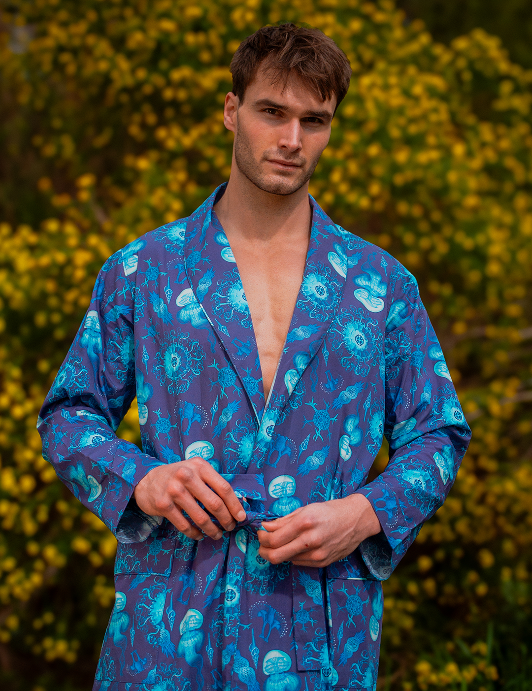 Our Kimonos feature classic oriental styling, along with our unique African-inspired print designs. Handcrafted, as always, using the finest organic cotton.