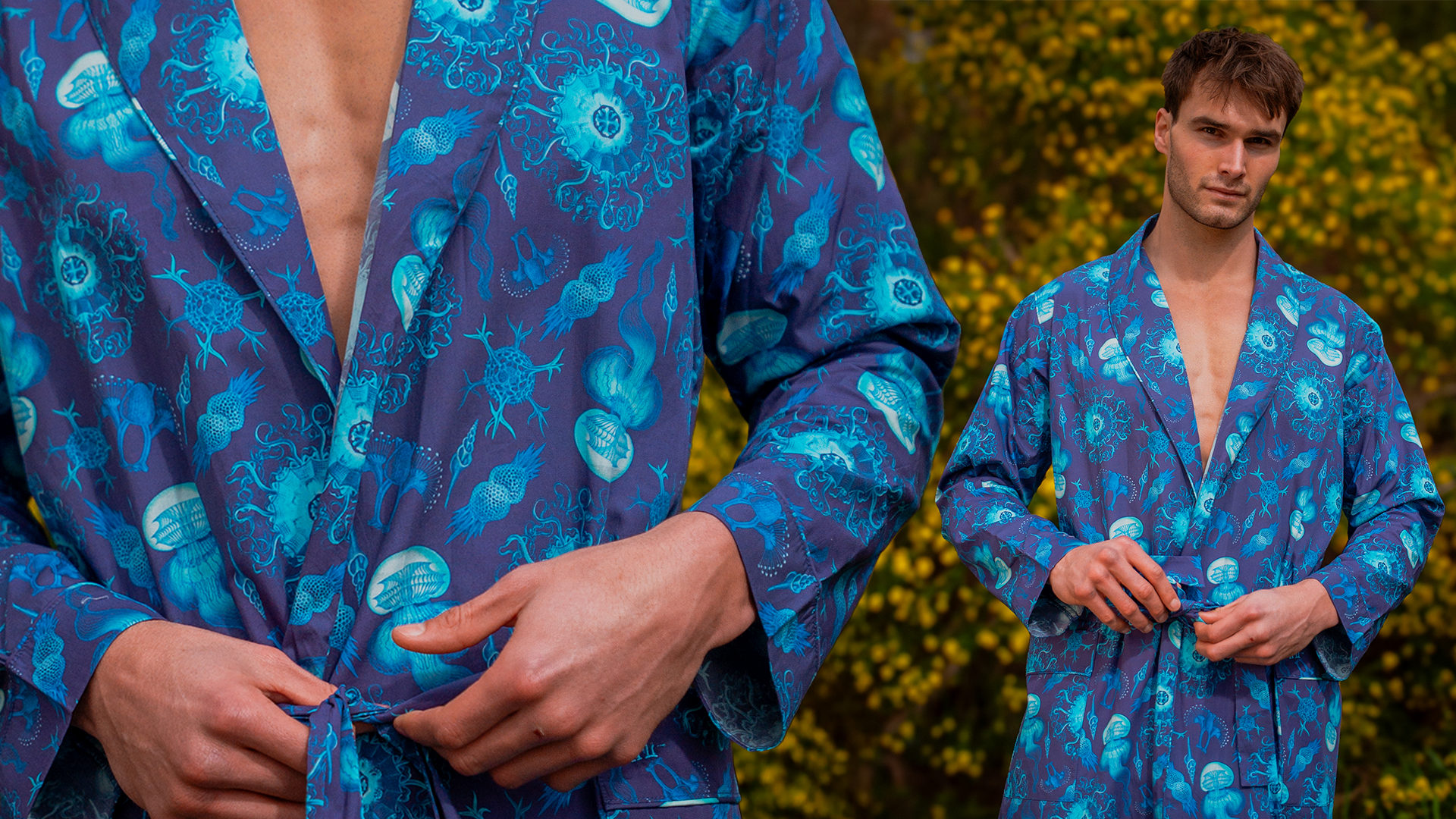 Our Kimonos feature classic oriental styling, along with our unique African-inspired print designs. Handcrafted, as always, using the finest organic cotton.