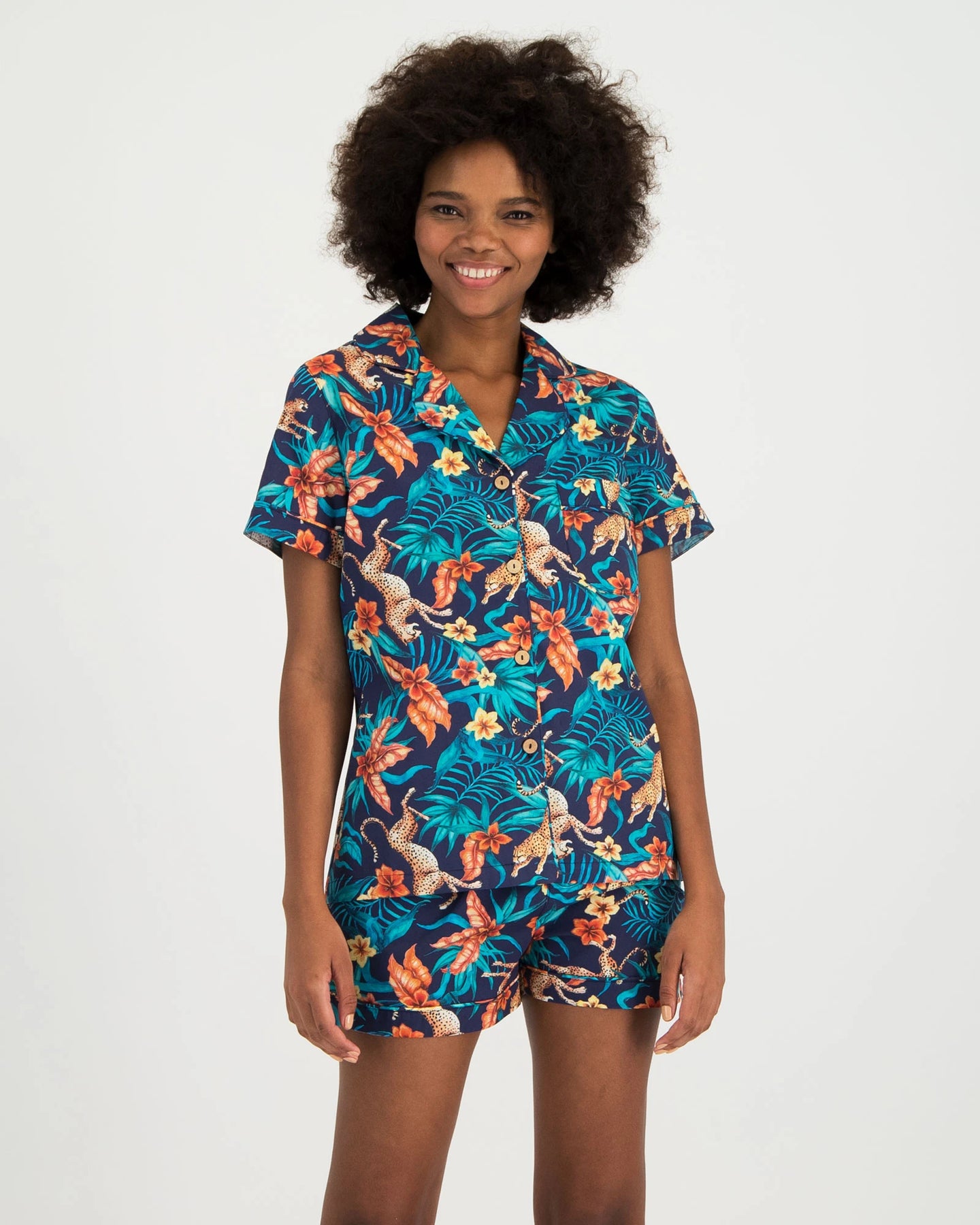 Womens Short Pyjamas - Jungle Cheetah on Navy